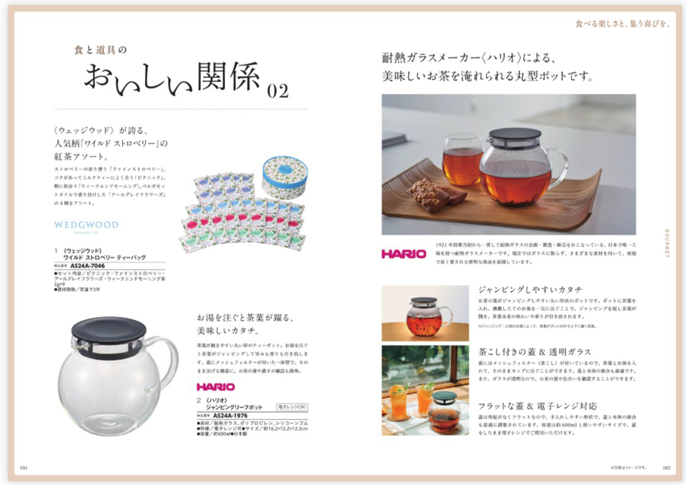 人気のキッチングッズやグルメ、ファッションを中心に、心を込めた贈り物にふさわしい品々を掲載。パーソナルからフォーマルギフトまで幅広いニーズにお応えします。さまざまなシーンを思い浮かべながら選ぶひとときや、心動かされるモノとの出会いも一緒にお楽しみください。