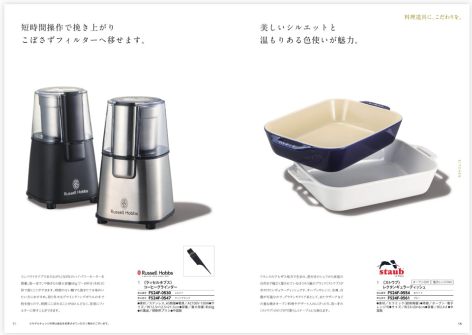 人気のキッチングッズやグルメ、ファッションを中心に、心を込めた贈り物にふさわしい品々を掲載。パーソナルからフォーマルギフトまで幅広いニーズにお応えします。さまざまなシーンを思い浮かべながら選ぶひとときや、心動かされるモノとの出会いも一緒にお楽しみください。