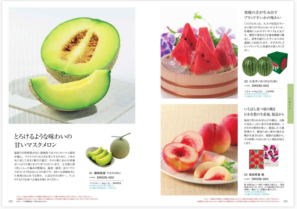 食通をうならせる地域ブランドの逸品や、生産者の顔が見える農産物・畜産物、国産品の海の幸などはもちろん、グルメカタログギフトで高い人気を誇る、定番のスウィーツ、生鮮、総菜、お酒などまで、多彩なジャンルを掲載。贈り先さまに選ぶ楽しみと美味の満足をお届けします。