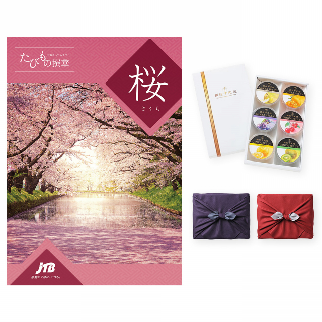 JTB たびもの撰華 カタログギフト 桜(さくら) + 銀座千疋屋 銀座ゼリー(6個入り) セット【京都・風呂敷包み】
