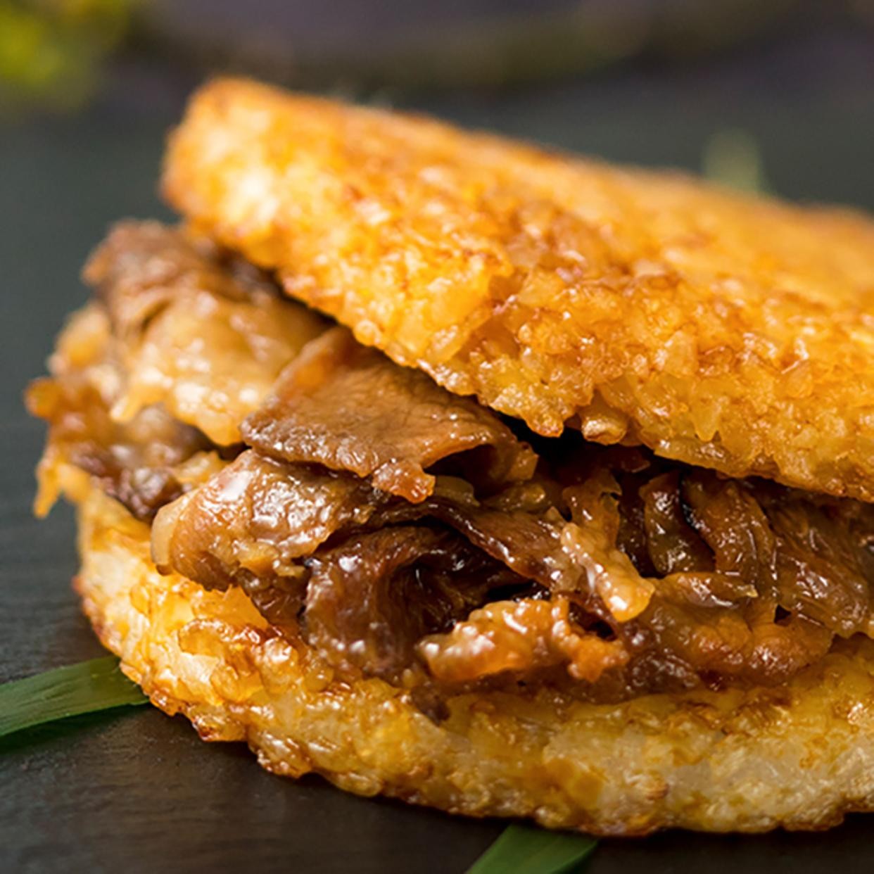 叙々苑秘伝のたれと炙り焼き製法で焼き上げた和牛を香ばしさあふれるライスパテでサンドし、お肉はもちろん、お米にもしっかりと味付けされております。