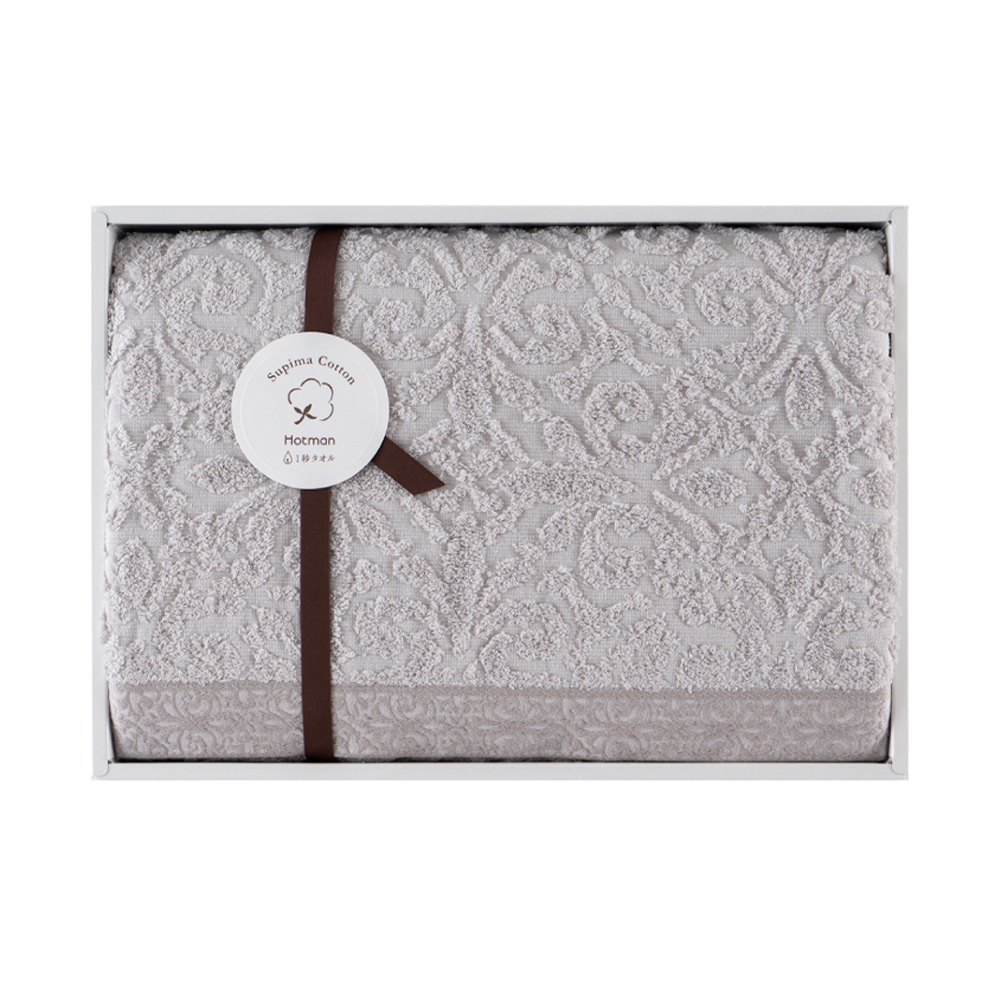 ヨーロッパ建築のレリーフをイメージした模様をジャカード織りで表現しました。お部屋の雰囲気に合わせやすい上品で落ち着いた色のタオルです。スーピマ綿糸をゆったりと織り、使いやすさを追求しました。