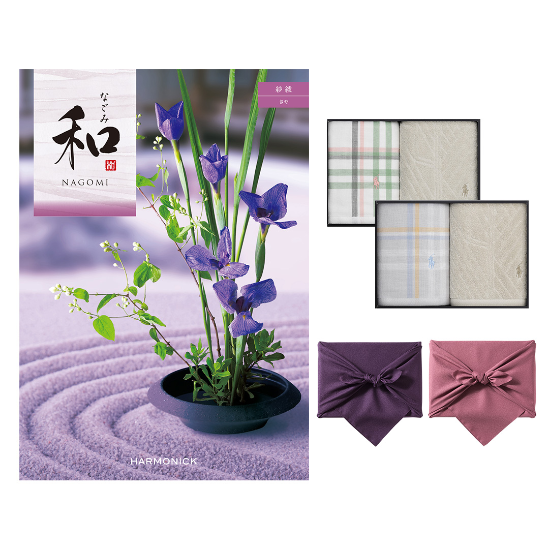 和(なごみ) カタログギフト 紗綾(さや) + RALPH LAUREN HOME(ラルフ ローレン ホーム)エステラ プラッド ウォッシュタオルセット【風呂敷包み】