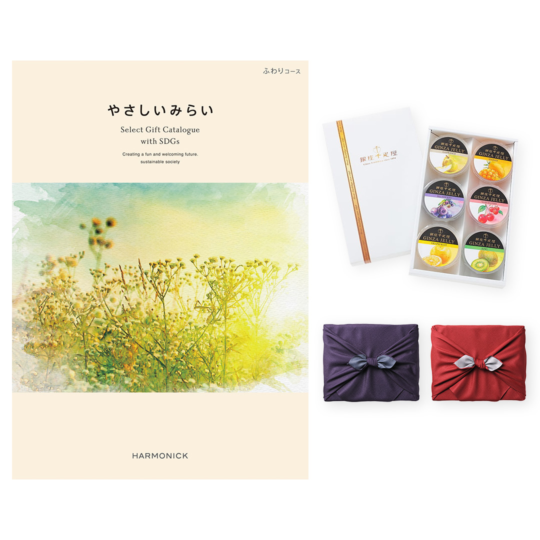 やさしいみらい カタログギフト(ふわりコース)+ 銀座千疋屋 銀座ゼリー(6個入り) セット【京都・風呂敷包み】