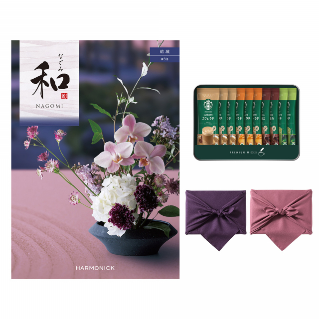 和(なごみ) カタログギフト 結城(ゆうき) +スターバックス プレミアムミックスギフト(SBP-20B)【風呂敷包み】