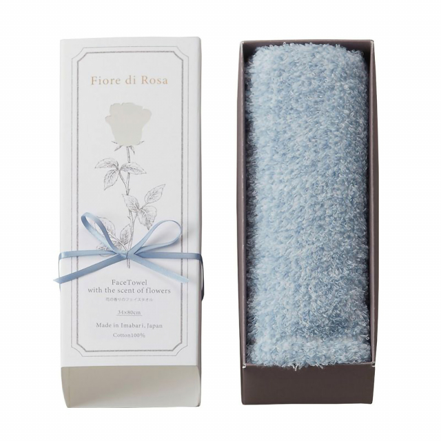 ほんのりとナチュラルなお花の香りと、思わず顔をうずめたくなるボリューム感のあるふわふわの肌ざわりと吸水性をお楽しみいただけます。パッケージはローズの花の部分からタオルが見えリボンをかけて一輪のバラを贈っているよう。※セット画像は色違いのセットの参考画像となります。