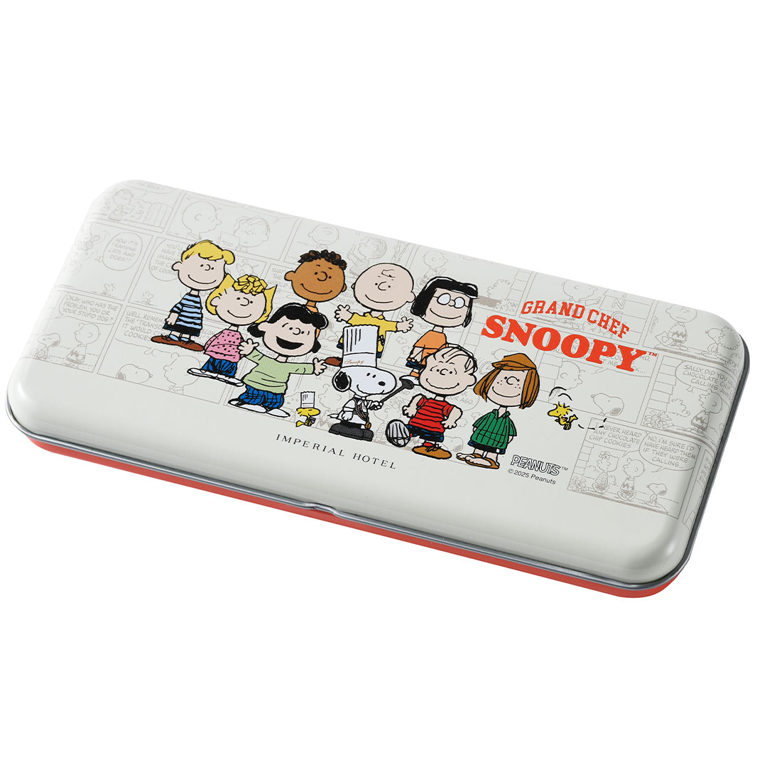 帝国ホテル 東京の料理長スヌーピー。数量限定のデザイン缶は、ギフトやご自身のコレクションにおすすめです。