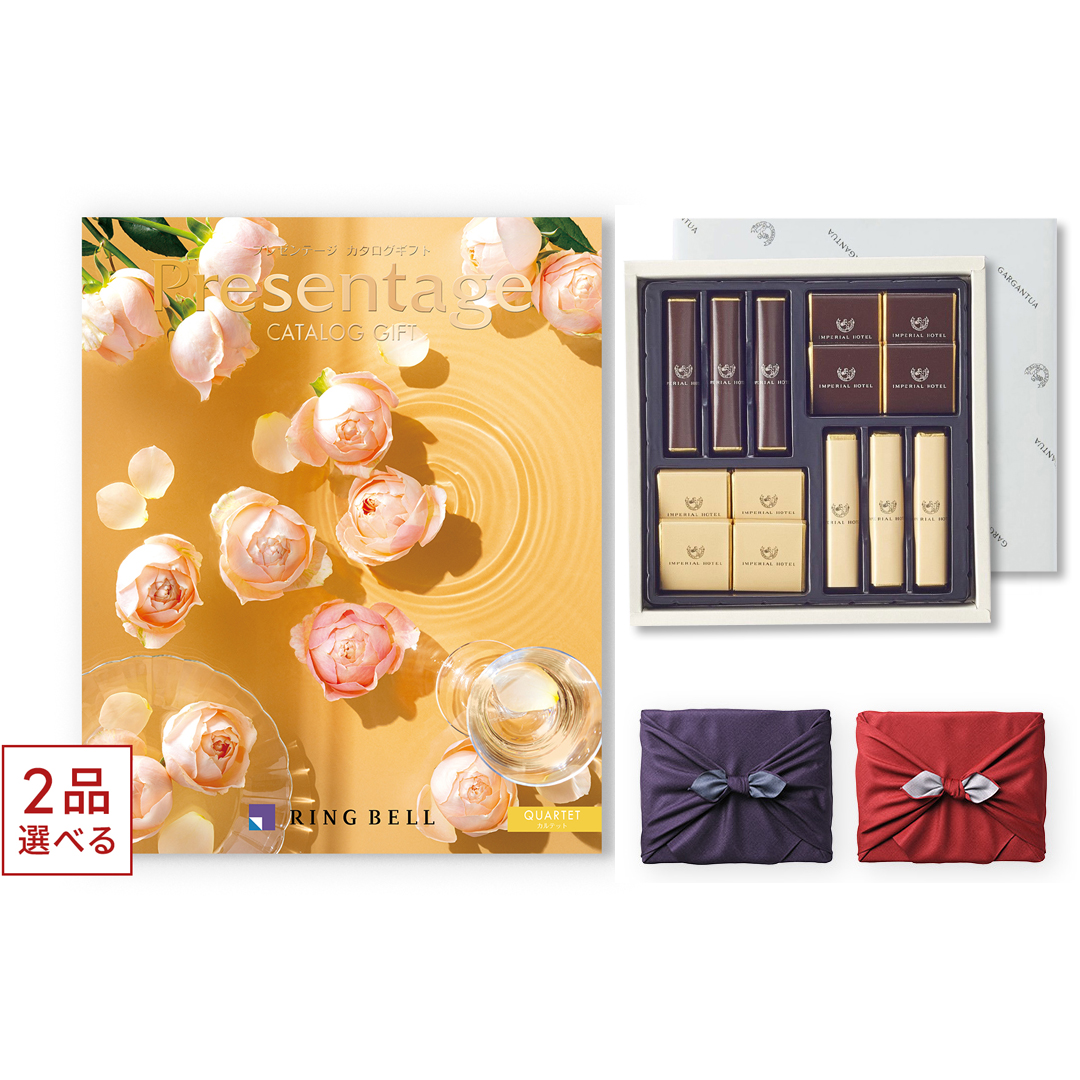 [1冊から2品選べる] リンベル Presentage(プレゼンテージ)カタログギフト QUARTET〔カルテット〕+帝国ホテル チョコレート(TA-20BE)セット【京都・風呂敷包み】