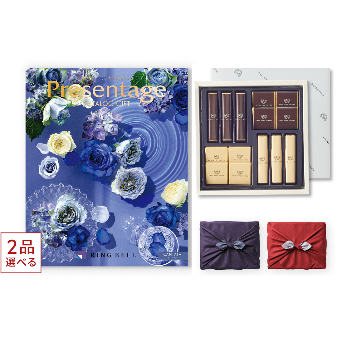 [1冊から2品選べる] リンベル Presentage(プレゼンテージ)カタログギフト CANTATA〔カンタータ〕+帝国ホテル チョコレート(TA-20BE)セット【京都・風呂敷包み】