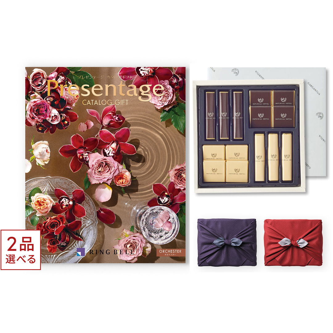 【10月14日より出荷予定】[1冊から2品選べる] リンベル Presentage(プレゼンテージ)カタログギフト ORCHESTER〔オルケスター〕+帝国ホテル チョコレート(TA-20BE)セット【京都・風呂敷包み】