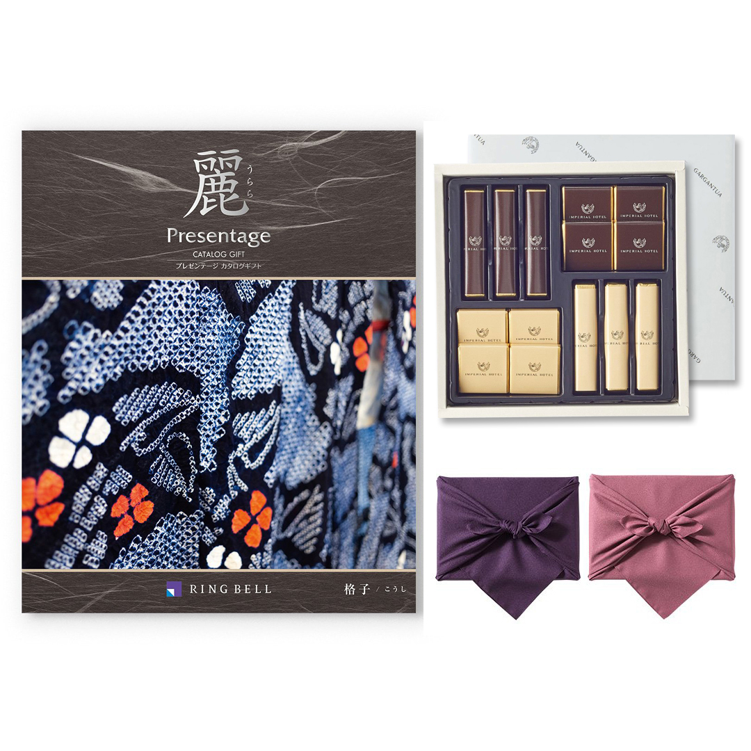 カタログギフト リンベル プレゼンテージ・麗(うらら) 〔格子(こうし)〕+帝国ホテル チョコレート(TA-20BE)セット【京都・風呂敷包み】
