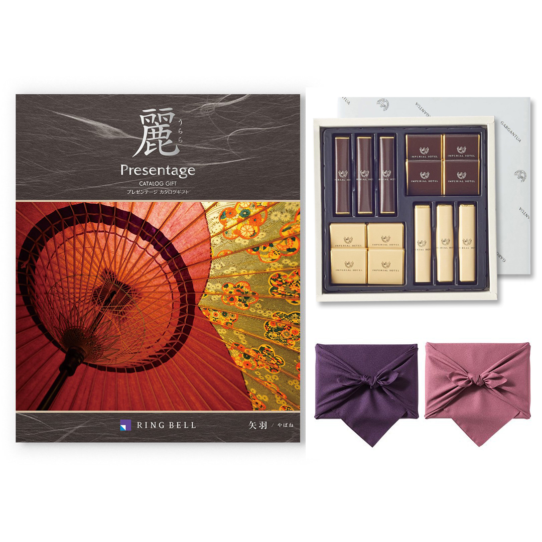 カタログギフト リンベル プレゼンテージ・麗(うらら) 〔矢羽(やばね)〕+帝国ホテル チョコレート(TA-20BE)セット【京都・風呂敷包み】