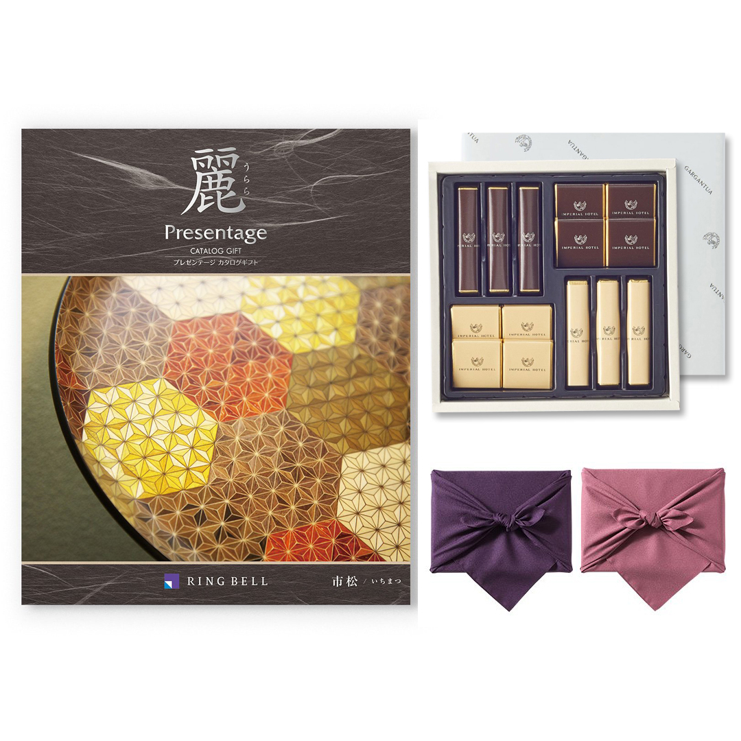 カタログギフト リンベル プレゼンテージ・麗(うらら) 〔市松(いちまつ)〕+帝国ホテル チョコレート(TA-20BE)セット【京都・風呂敷包み】
