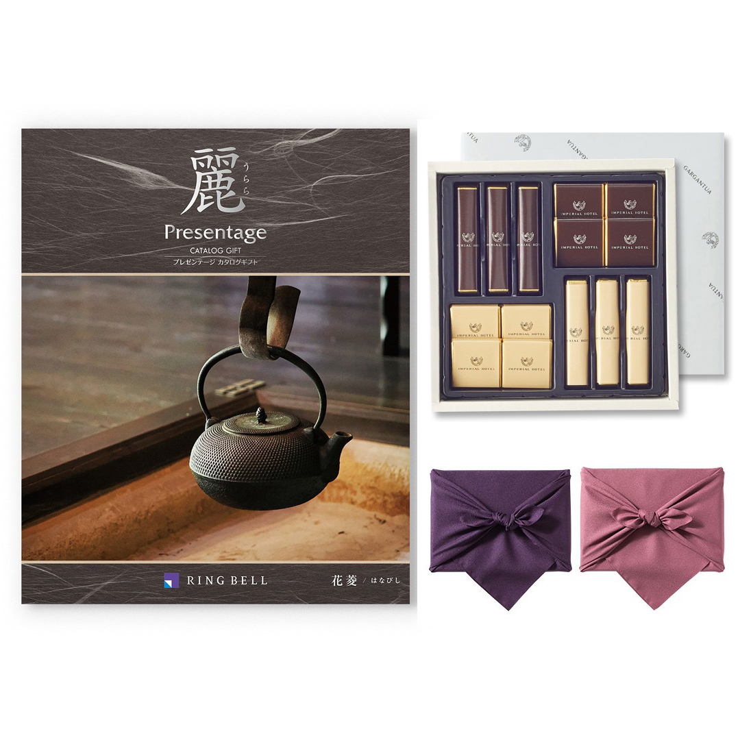 カタログギフト リンベル プレゼンテージ・麗(うらら) 〔花菱(はなびし)〕+帝国ホテル チョコレート(TA-20BE)セット【京都・風呂敷包み】
