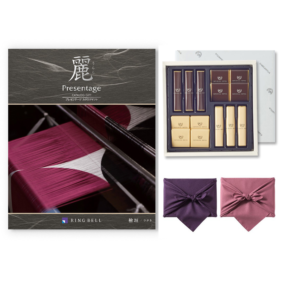 カタログギフト リンベル プレゼンテージ・麗(うらら) 〔檜垣(ひがき)〕+帝国ホテル チョコレート(TA-20BE)セット【京都・風呂敷包み】