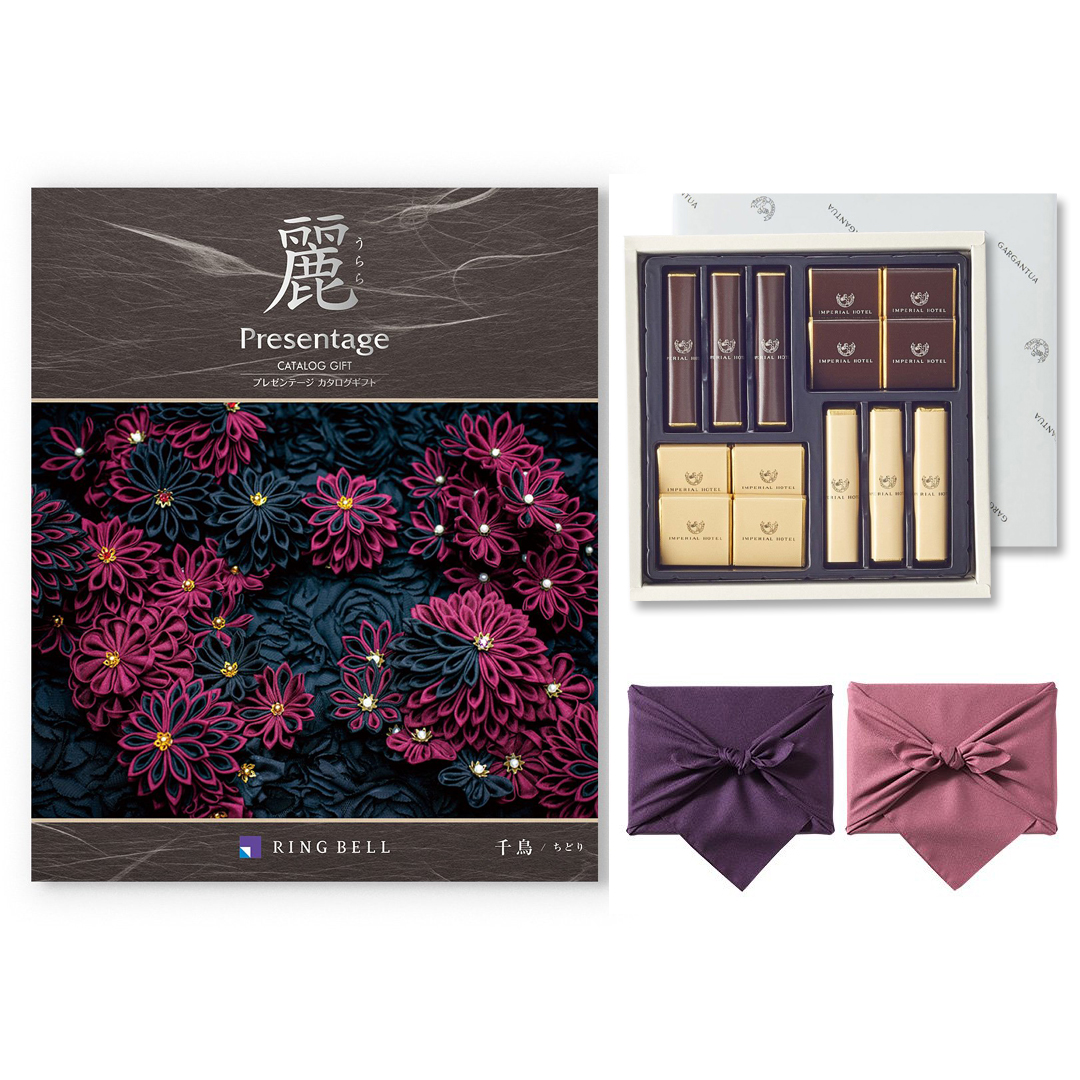 カタログギフト リンベル プレゼンテージ・麗(うらら) 〔千鳥(ちどり)〕+帝国ホテル チョコレート(TA-20BE)セット【京都・風呂敷包み】