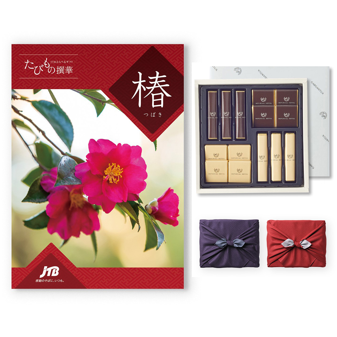 【10月14日より出荷予定】JTB たびもの撰華 カタログギフト 椿(つばき)+帝国ホテル チョコレート(TA-20BE)セット【京都・風呂敷包み】