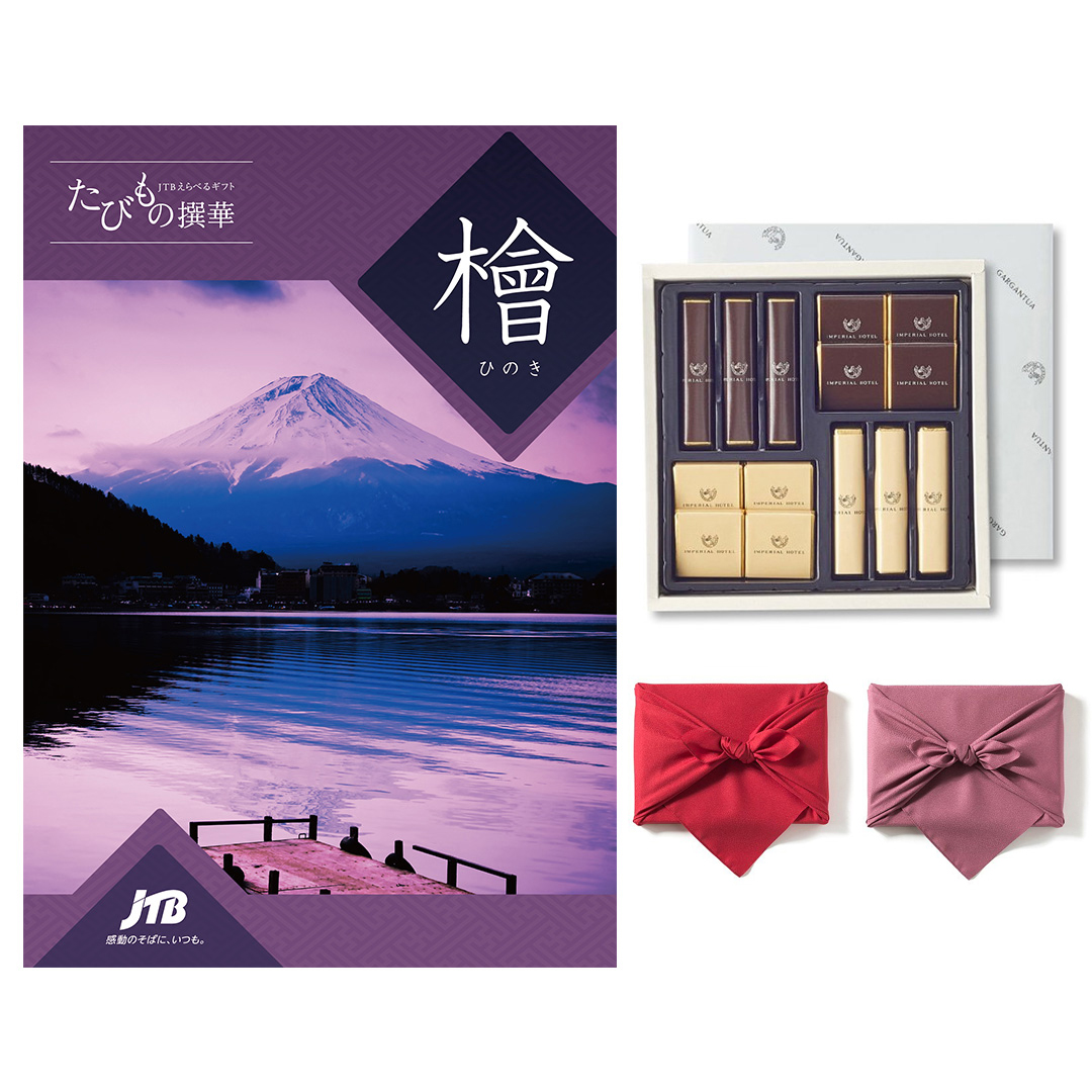 JTB たびもの撰華 カタログギフト 檜(ひのき)+帝国ホテル チョコレート(TA-20BE)セット【京都・風呂敷包み】