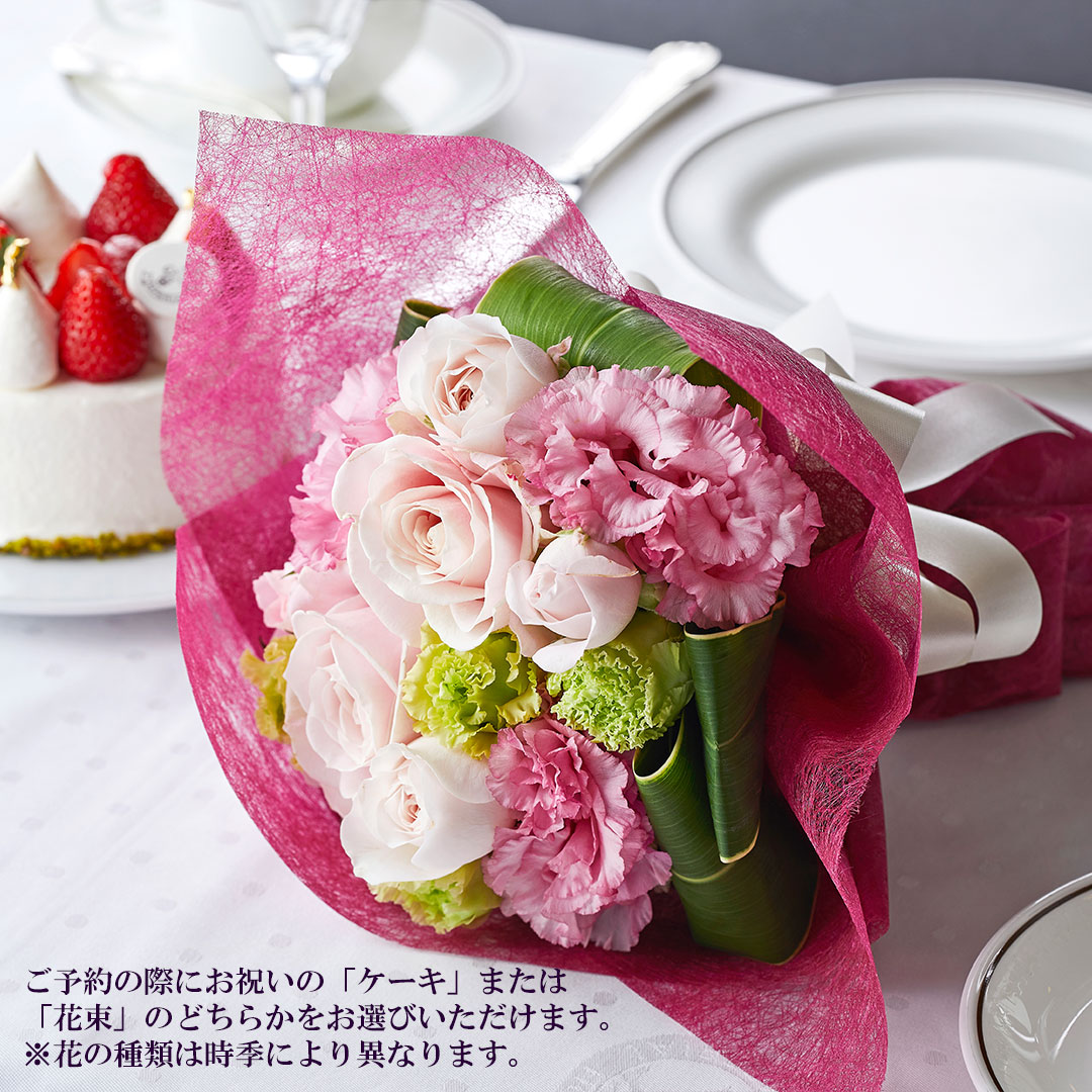 ※ご予約の際にお祝いの「ケーキ」または「花束」のどちらかをお選びください。